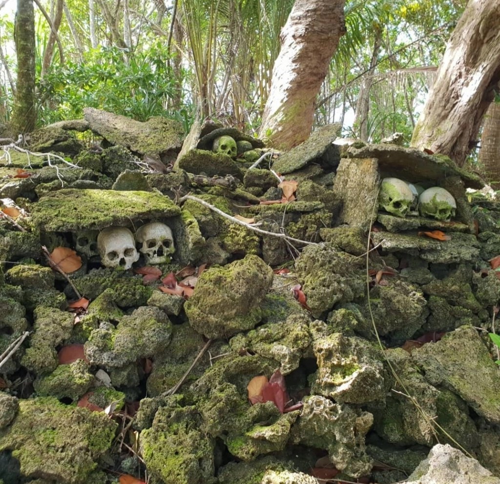 Surfing Skull Island is also a somewhat unexpected lesson in history too, for here lies the skulls of vanquished warriors and chiefs passed. In order to enter upon the island itself the cultural custom is to gain permission from the spirit world via a local guide. Skull Island seems hauntingly calm and it’s quite a surreal experience to see skull formations up close and personal, covered in moss and merged with the (super?) natural world.